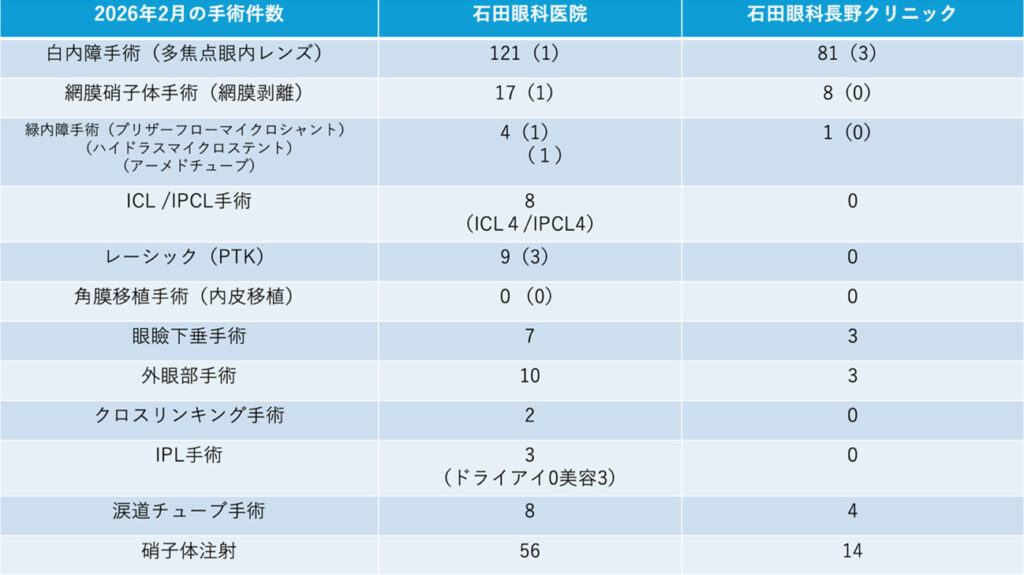 石田眼科では、白内障・緑内障・硝子体手術を中心とした高度な眼科手術を地域で提供できる体制を整えています。