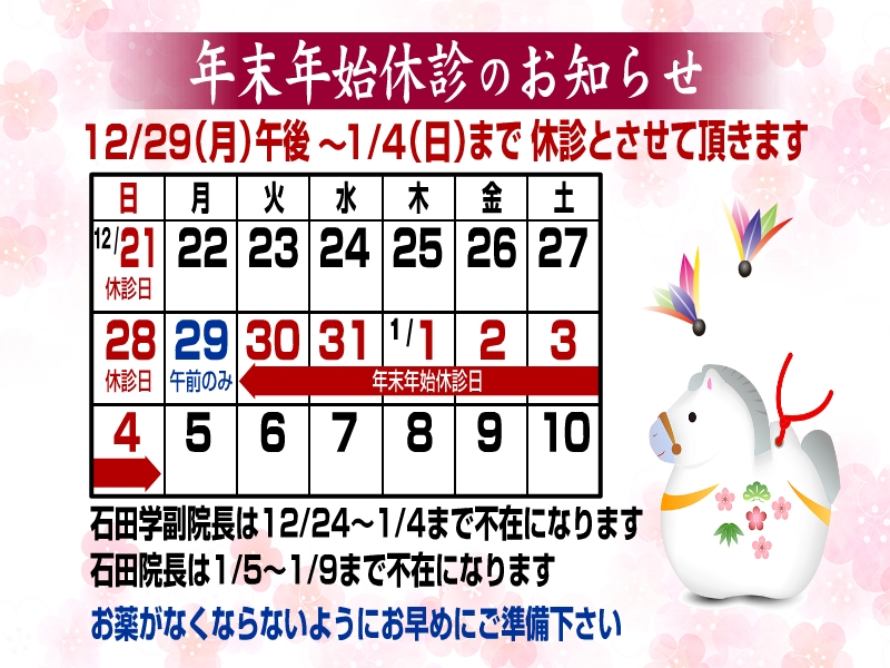 | 診療時間 | 月 | 火 | 水 | 木 | 金 | 土 | 日・祝 |
